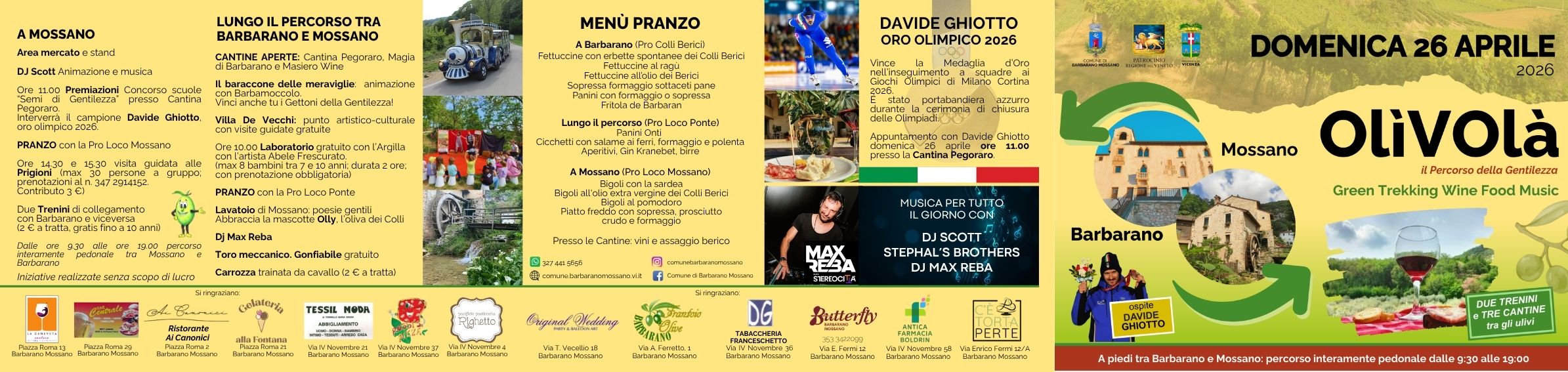 Ore 11.00 premiazioni Concorso scuole “Semi di Gentilezza” presso cantina Pegoraro. Interverrà come ospite d’onore DAVIDE GHIOTTO, oro olimpico 2026!