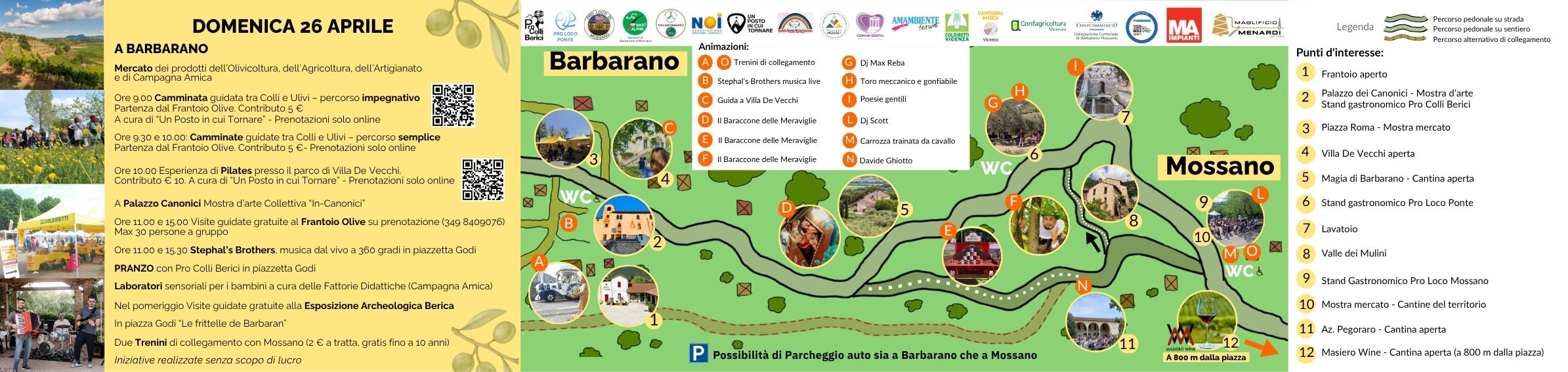 Dalle ore 9.30 alle ore 19.00 percorsi interamente pedonale tra Mossano e Barbarano